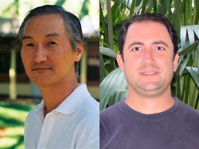 | Os professores Ma To Fu (à esquerda) e Dattori foram eleitos, respectivamente, para ocupar a chefia e a vice-chefia do Departamento |