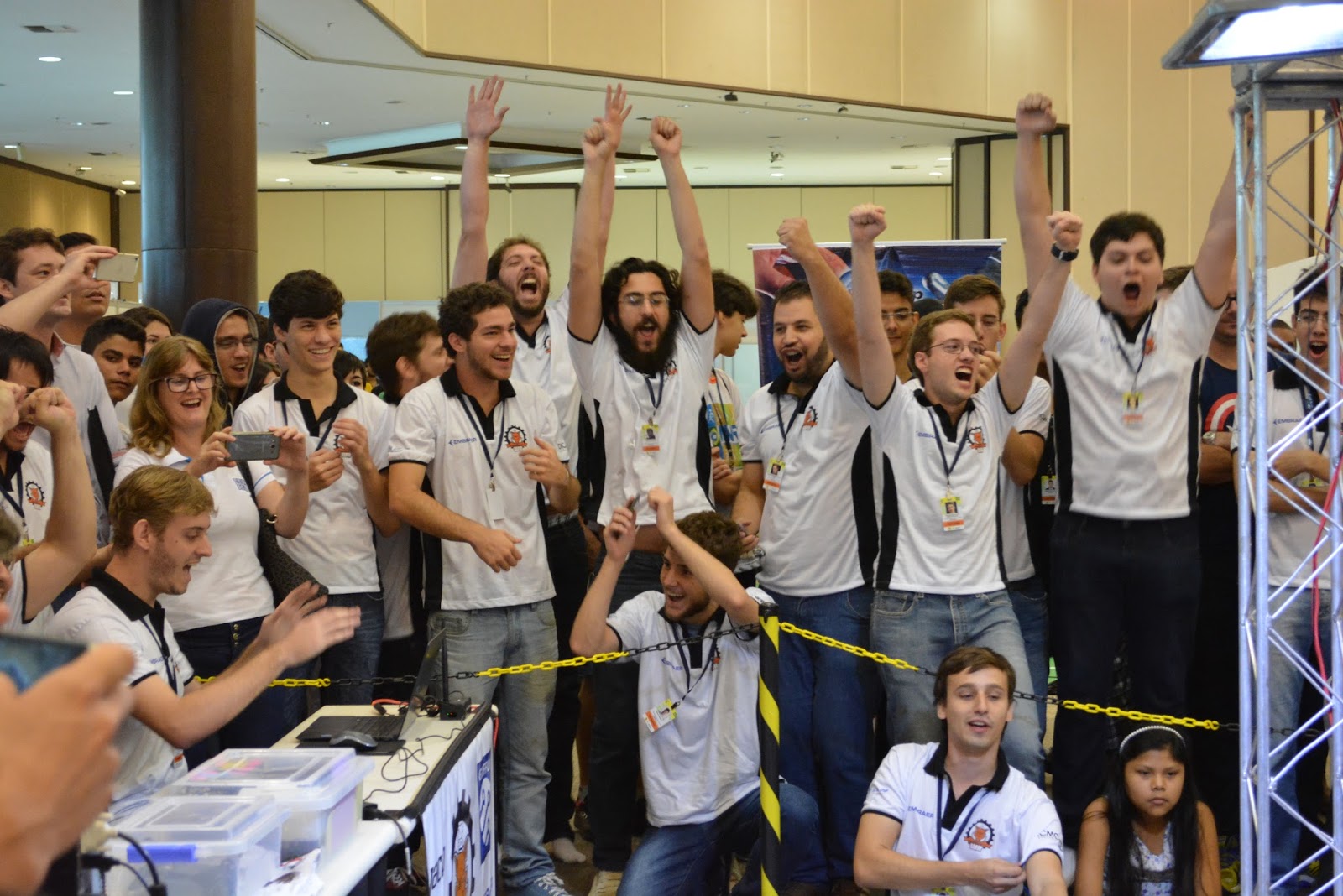 “Foi emocionante, um dos melhores jogos da competição. Nunca vou me esquecer do momento em que peguei o robô na mão, soltando fumaça, e o levei para consertá-lo: parecia uma verdadeira mesa de cirurgia. A equipe inteira lá: soldador na mão, chaves de fenda, lanternas de celulares. Uma loucura!”, conta o estudante Fernando Haber. Era a primeira vez que ele participava da Competição Latino-americana e Brasileira de Robótica (LARC/CBR) e não imaginava que, depois daquela cena, Vágner Love seria capaz de vencer a partida.