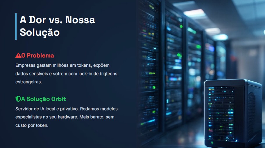 Boto.IA (Ex-Orbit) ― A ideia de criar a startup Boto.IA (ex-Orbit) surgiu quando Eduardo, que já atuava como cientista de dados e consultor, percebeu que as soluções de gigantes como OpenAI apresentavam problemas críticos para empresas e governos. Entre eles, a imprevisibilidade dos custos, já que esses provedores internacionais cobram por volume de processamento, o que torna a operação mais cara conforme a empresa aumenta sua produção.